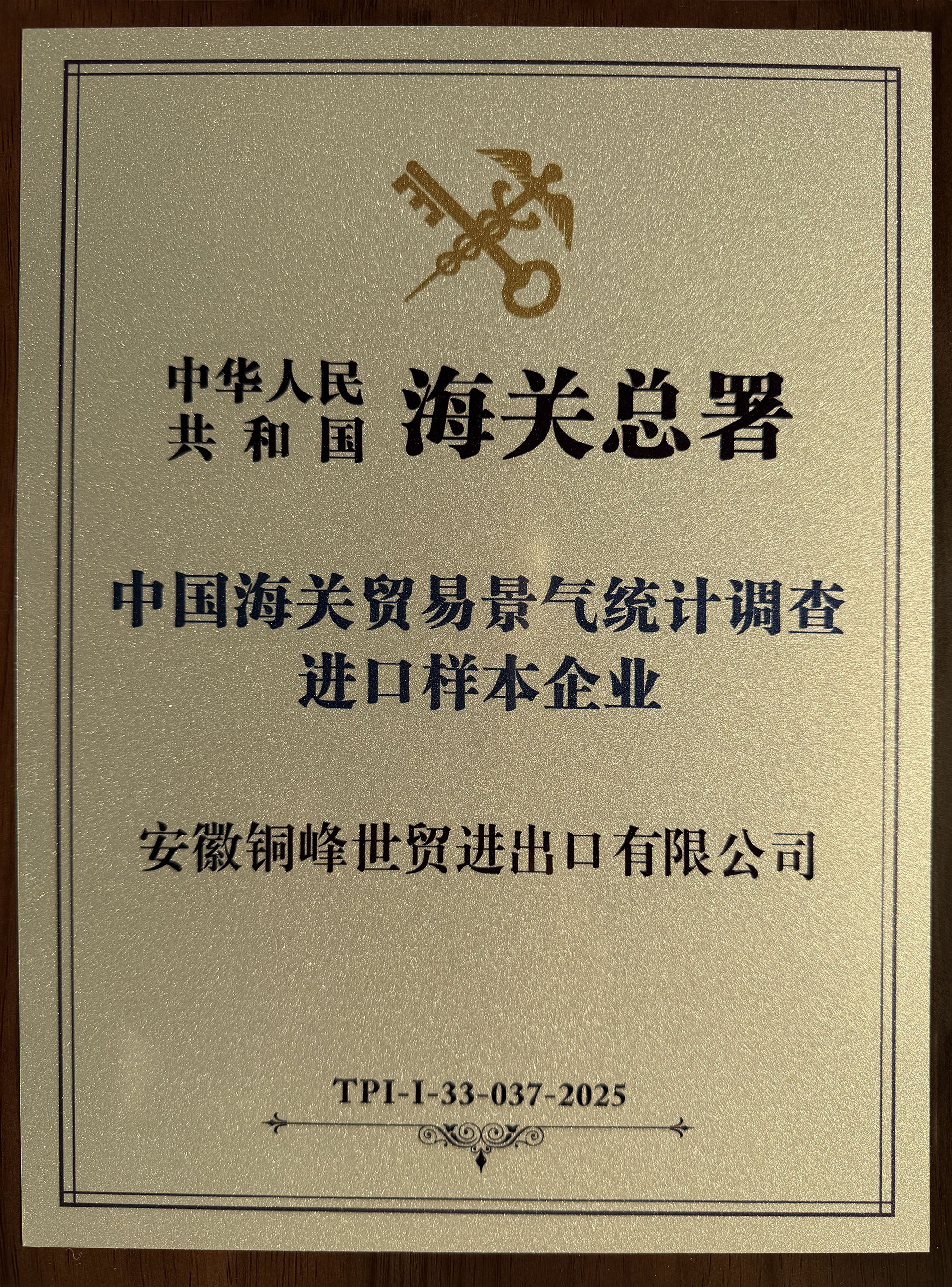 銅峰世貿(mào)進(jìn)出口公司獲評(píng)“中國(guó)海關(guān)貿(mào)易景氣統(tǒng)計(jì)調(diào)查進(jìn)口樣本企業(yè)”